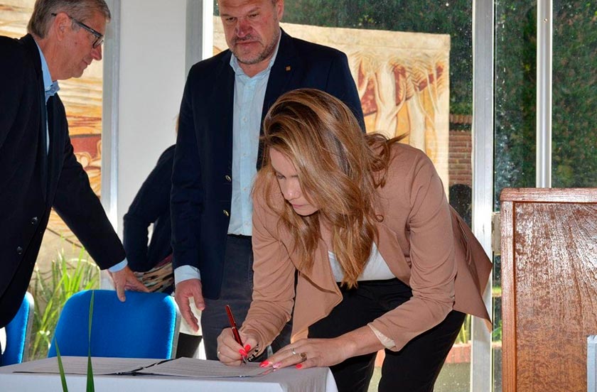 No obstante participar por la mañana del acto que puso en funciones como director del INTA local el ingeniero Caniza, la jefa departamental Noelia Bazzi firmó un Convenio de Cooperación cuyo primer objetivo será coordinar acciones conjuntas para la puesta a punto del 1° Simposio de Frutas Finas: frutilla y arándano en el NEA; los días 22 y 23 de septiembre.