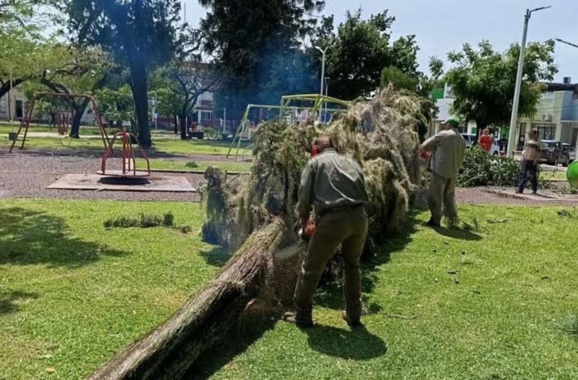 Las cuadrillas trabajaron en la remoción de ramas y árboles caídos, además de brindar asistencia a los vecinos afectados por el temporal. El operativo incluyó tareas de limpieza, despeje de calles y verificación de daños en viviendas y espacios públicos.