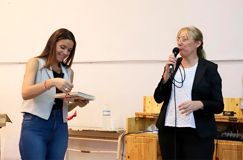 La intendente Noelia Bazzi visitó el establecimiento y compartió con los alumnos un mensaje de acompañamiento institucional, destacando que “esta gestión apuesta firmemente a capacitar al ecosistema emprendedor, brindando programas e incentivos para que las ideas se conviertan en oportunidades concretas”.