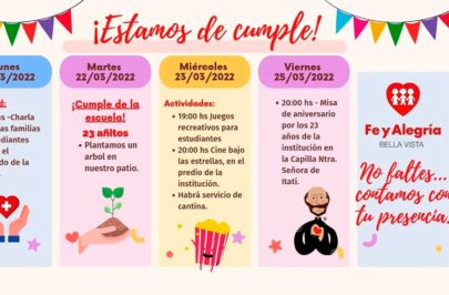 El ciclo municipal “Cine bajo las estrellas” se sumará a las actividades por el vigésimo tercer Aniversario de la Escuela Fe y Alegría del Barrio Norte. Si bien la entidad desarrollará un programa a partir de este lunes 21 con...