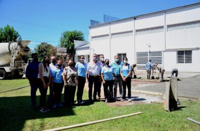 El intendente Walter Chavez junto a colaboradores del programa de Presupuesto Participativo se hizo presente la Escuela Normal Superior donde fue recibido por directivos para mostrar a la comunidad educativa los avances de la obra de construcción de un campo...