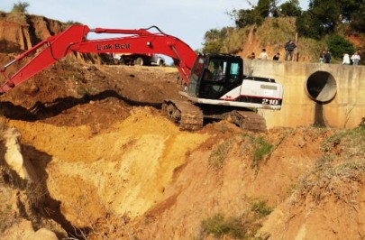 El jefe comunal de Bella Vista, escribano Walter Chavez acompañado del secretario de Infraestructura, ingeniero Gastón Carcaño, supervisaron la obra de apertura de la calle General Roca y la estructura de desagües de la laguna Aguilar sobre calle Pedro Ferré....