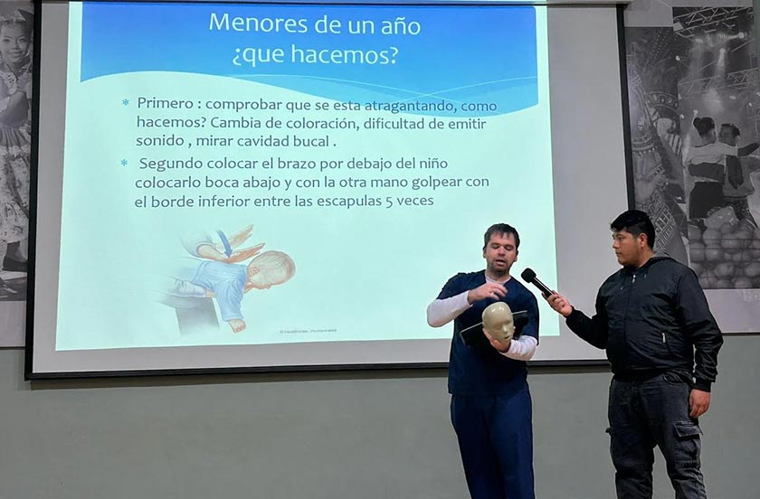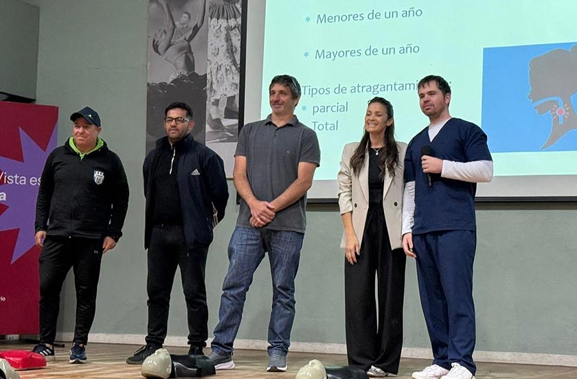 El encuentro tuvo lugar por la mañana en la Casa de la Cultura y estuvo orientado a brindar herramientas para la atención de emergencias médicas. Durante la actividad, los asistentes recibieron instrucción en RCP básico, a cargo del doctor Matías Comisario, y en manejo de convulsiones y atragantamientos, capacitación dictada por el doctor Marcos Kunz.